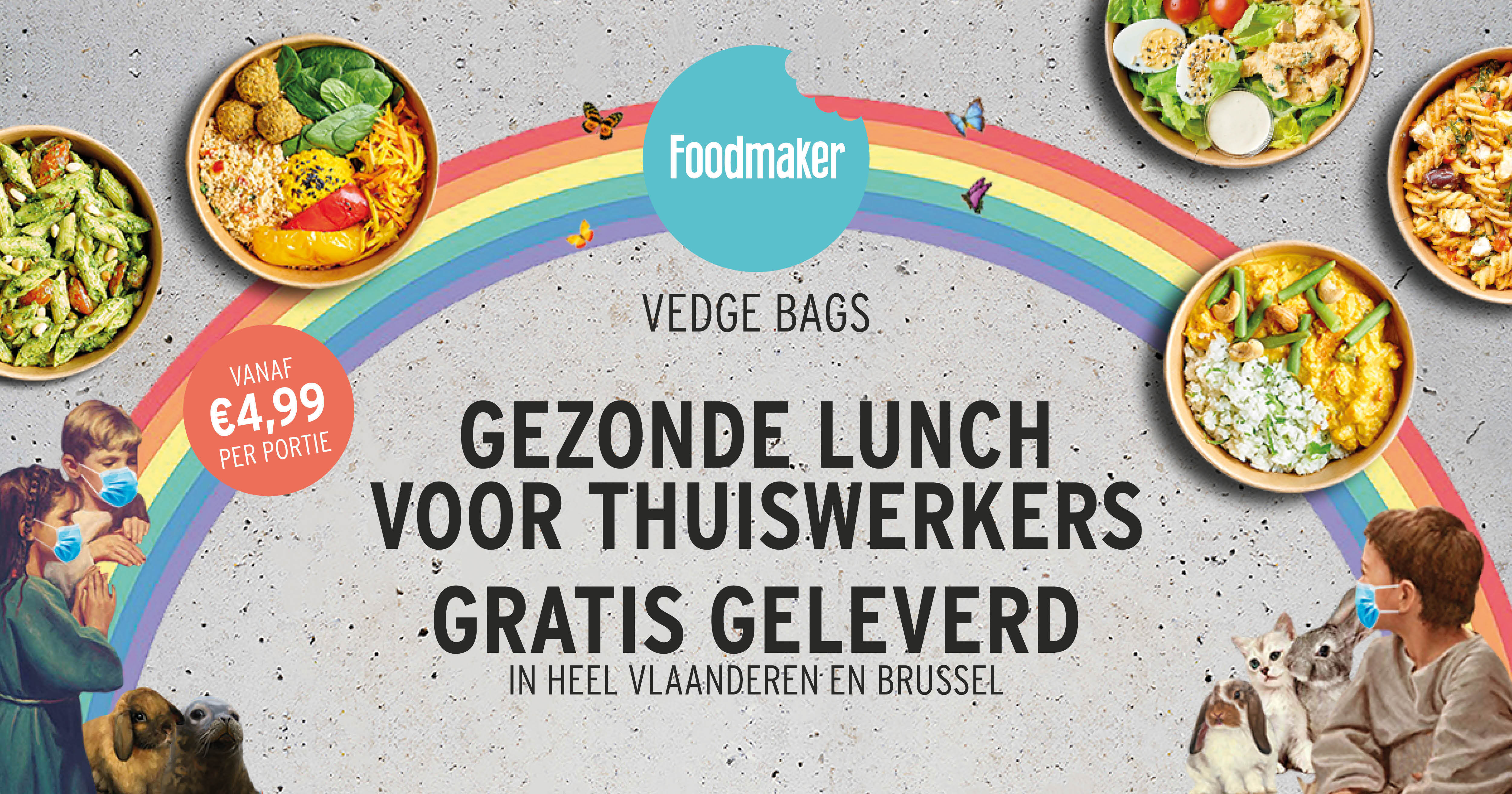 Foodmaker Vedge Bags – pakketten met gerechten vol groenten rechtstreeks vanuit onze keuken gratis geleverd aan de deur van jullie thuiswerkers of op kantoor.